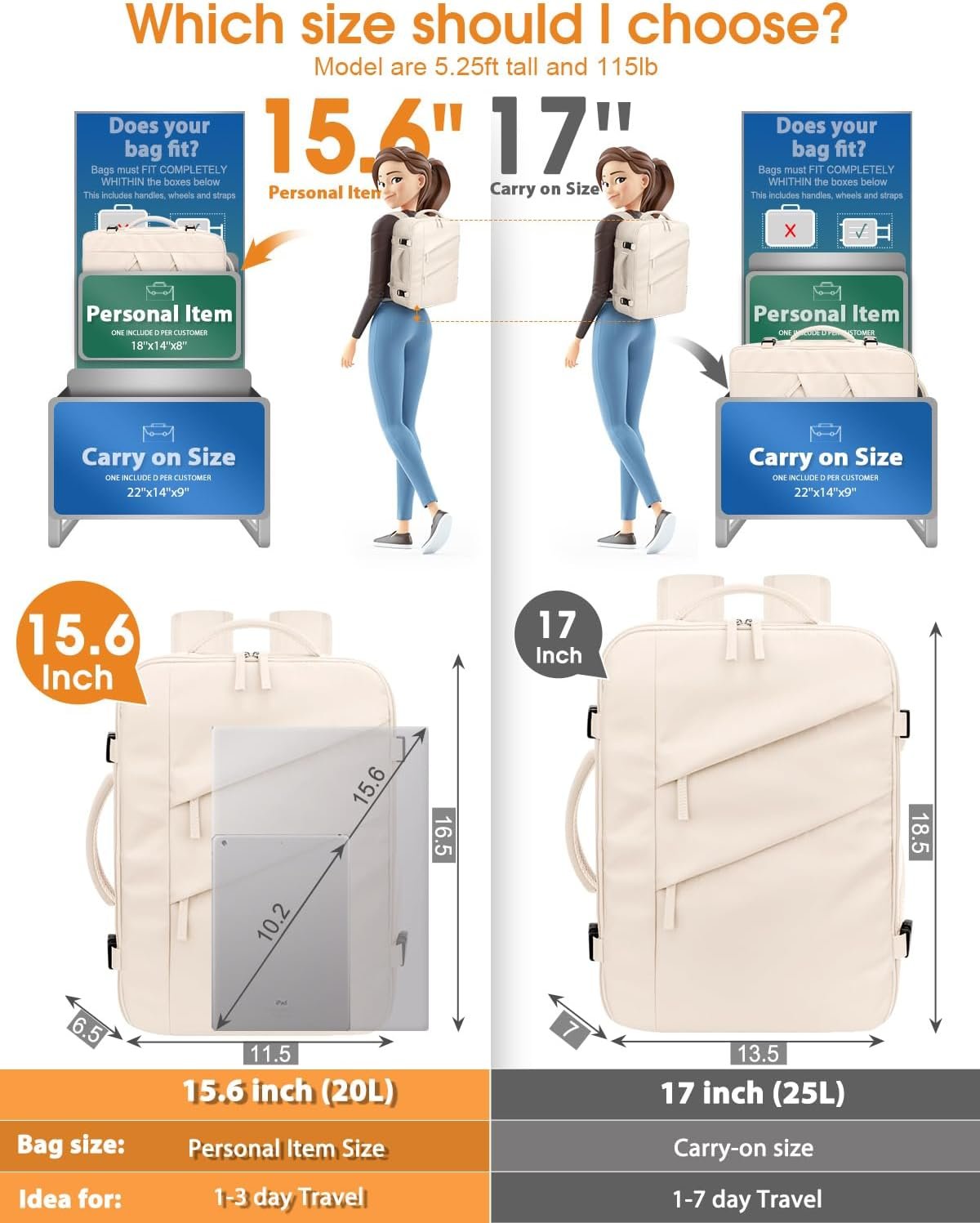 20L Capacity & 11 Pockets to Keep Organized:Roomy main compartments with 180° opening zipper allow access from the top like a traditional backpack or fully open like a suitcase. Say goodbye to mess and now every item has its place.2 front pockets for easy access to travel essentials, while a dedicated wet/dry bag separates toiletries. 1 zipper mesh pocket provides visual storage, Padded laptop compartment with 1 organizer pocket is nice for small items, keeping everything neat and within reach.