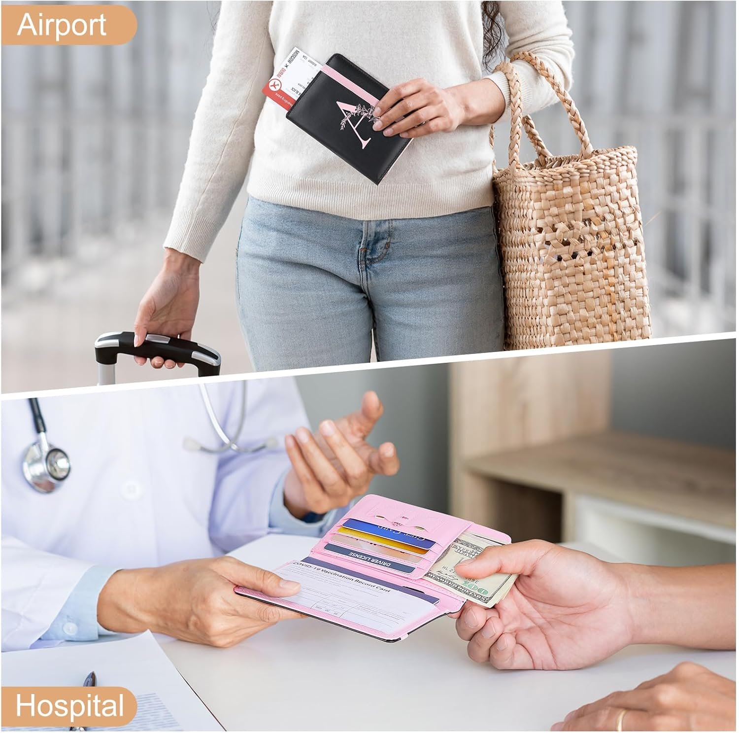 Premium PU Leather: The passport wallet is made from PU leather with soft comfortable touch, waterproof and easy to clean; This faux leather passport holder protects your passport safe from damage, preventing wrinkles, tears, and water stains, providing durable protection of your travel essentials during the trip