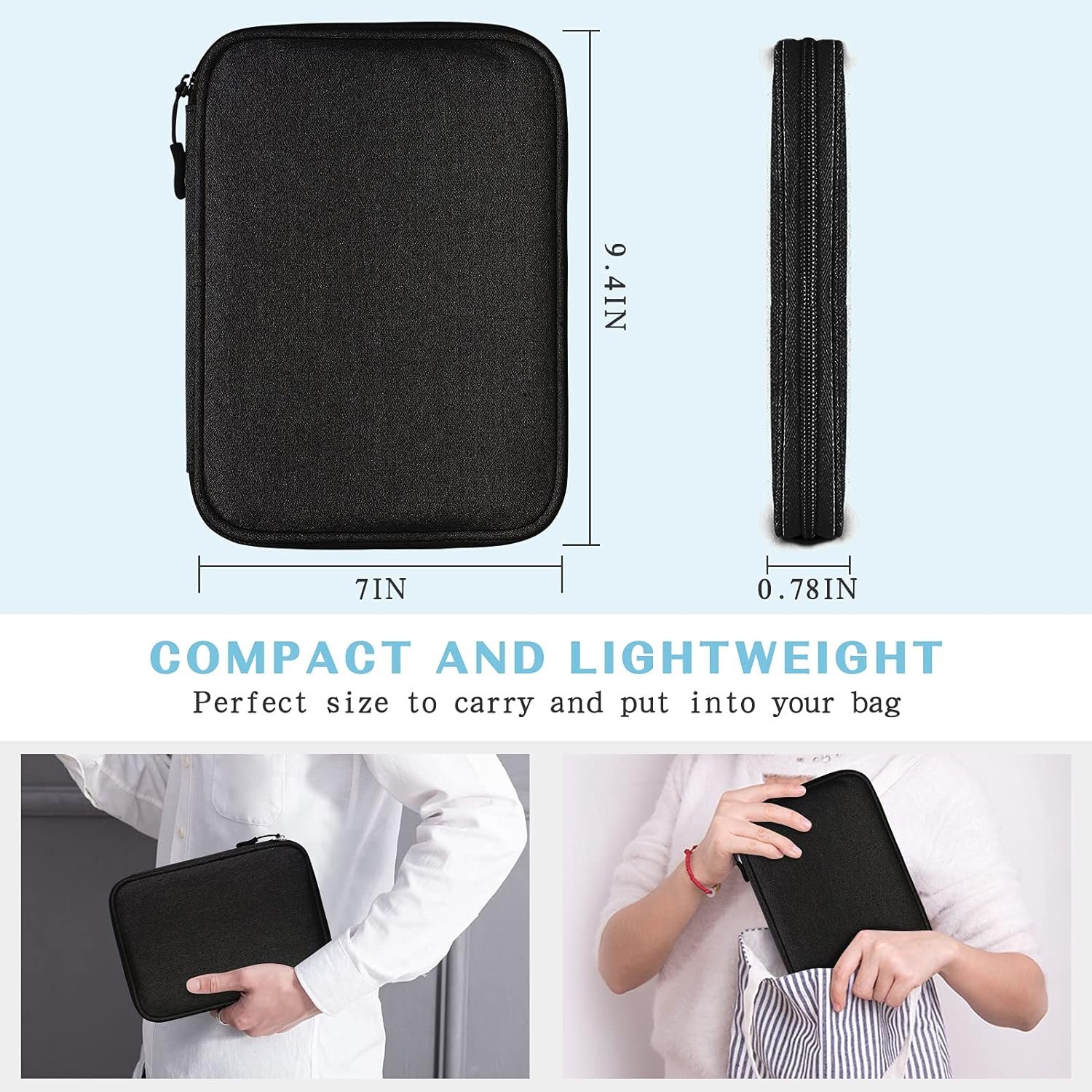 Dimensions: The Size of the cable storage travel case: 9.4″ x 7″ x 0.8″. Compact size and lightweight make it easy to carry and put into your backpack, handbags or laptop bag without taking much space. Suitable for family use and daily organization.