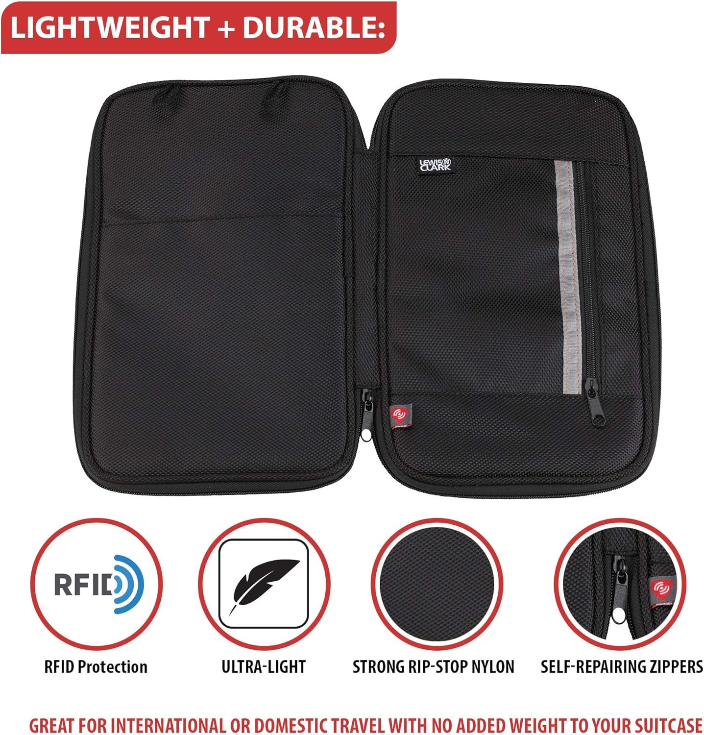 LIGHTWEIGHT + DURABLE: With strong rip-stop nylon and self-repairing zippers, it makes for an ultra-light, yet secure solution to keep your valuables safely hidden; great for international or domestic travel with no added weight to your suitcase