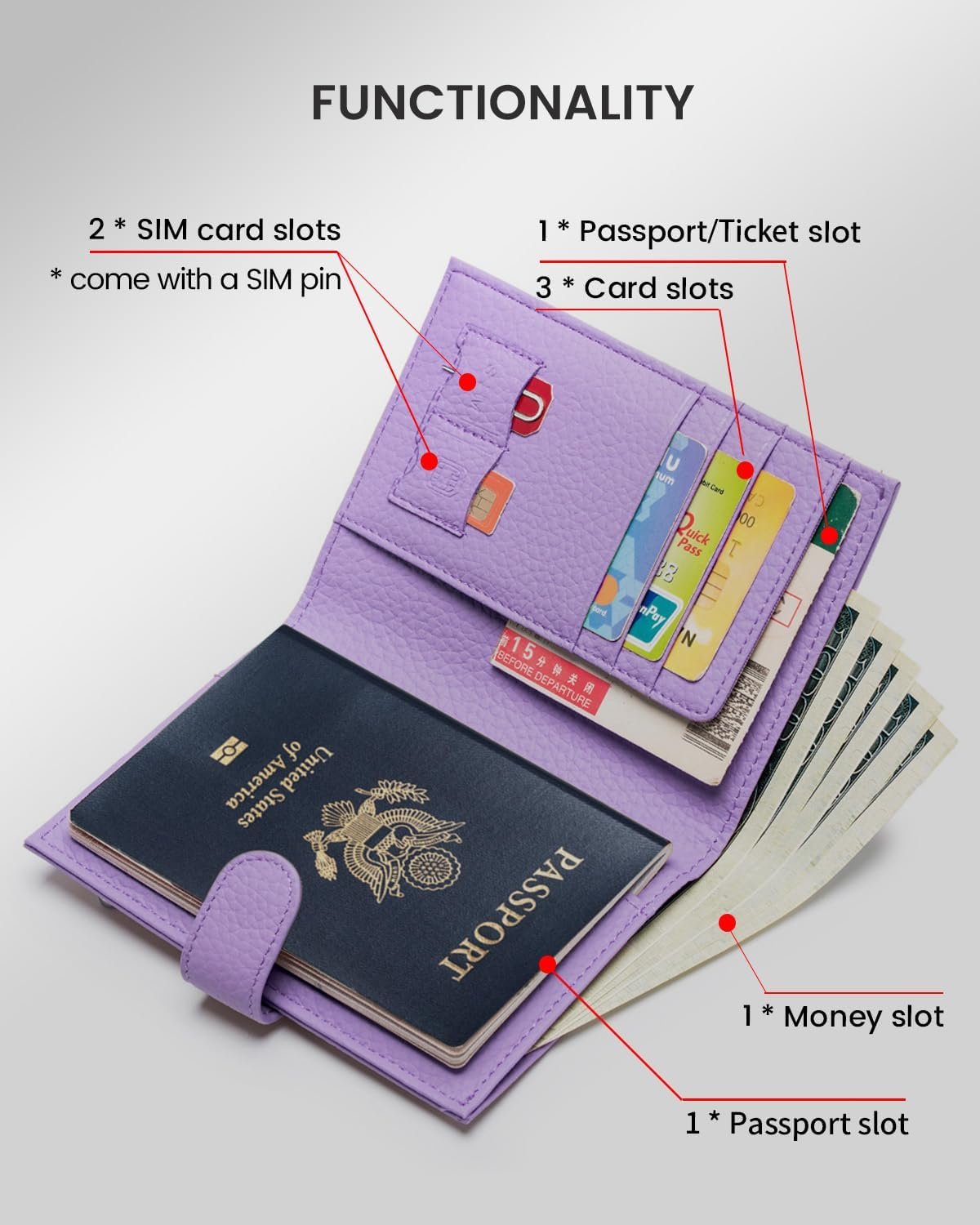 VERSATILE PASSPORT HOLDER FOR TRAVEL:Keep all your essentials organized with this compact passport holder, designed to hold your passport, airline tickets, credit cards, cash, coins, SIM cards, and even comes with a SIM card ejector tool—perfect for international trips