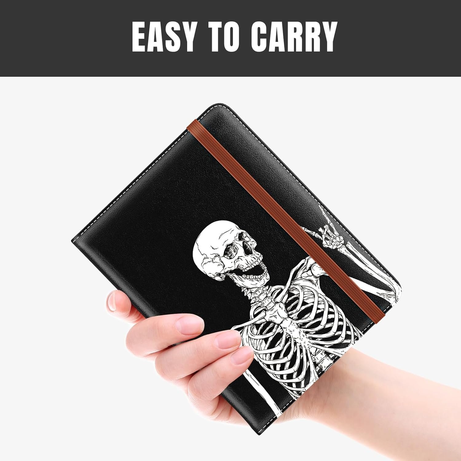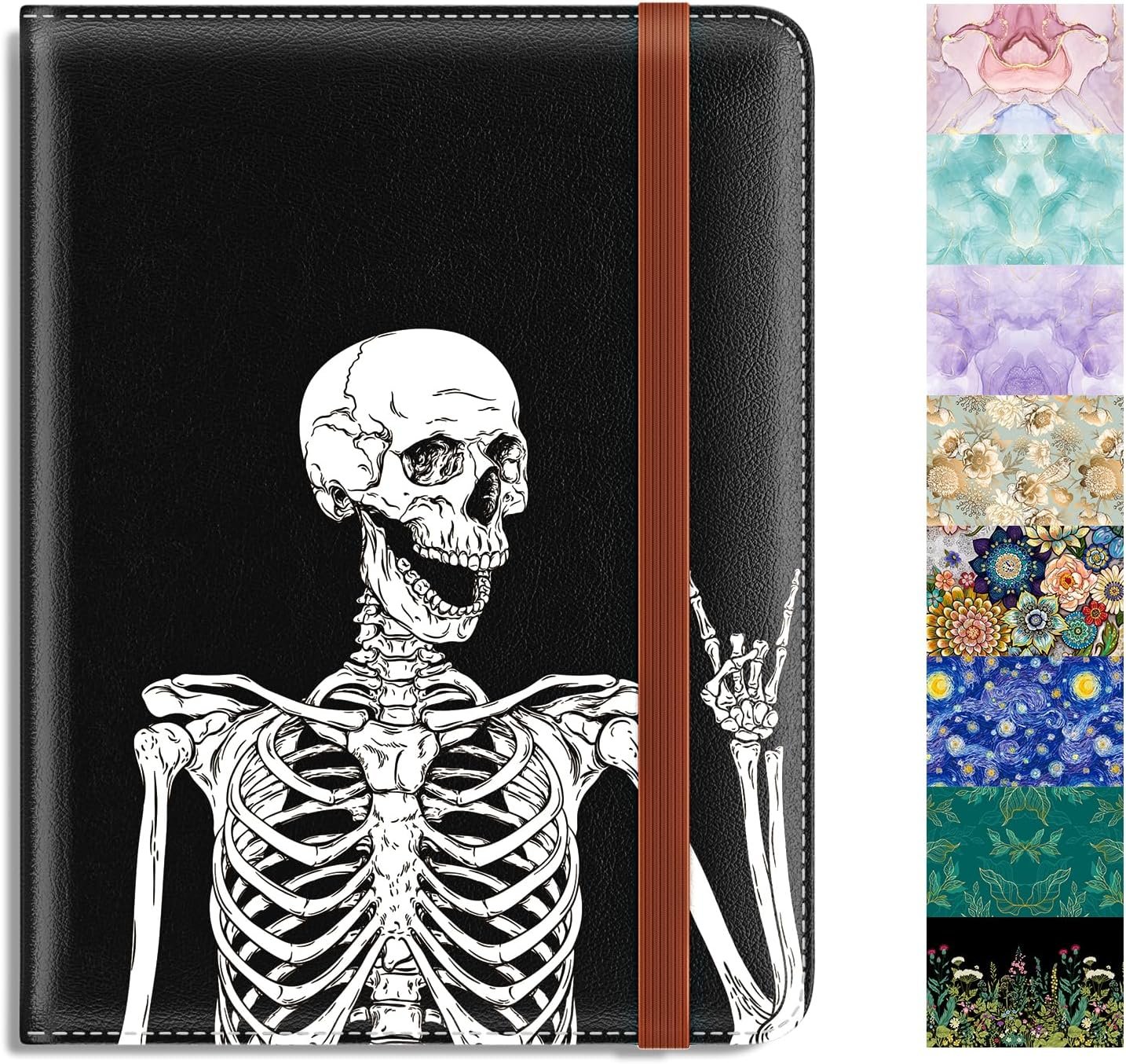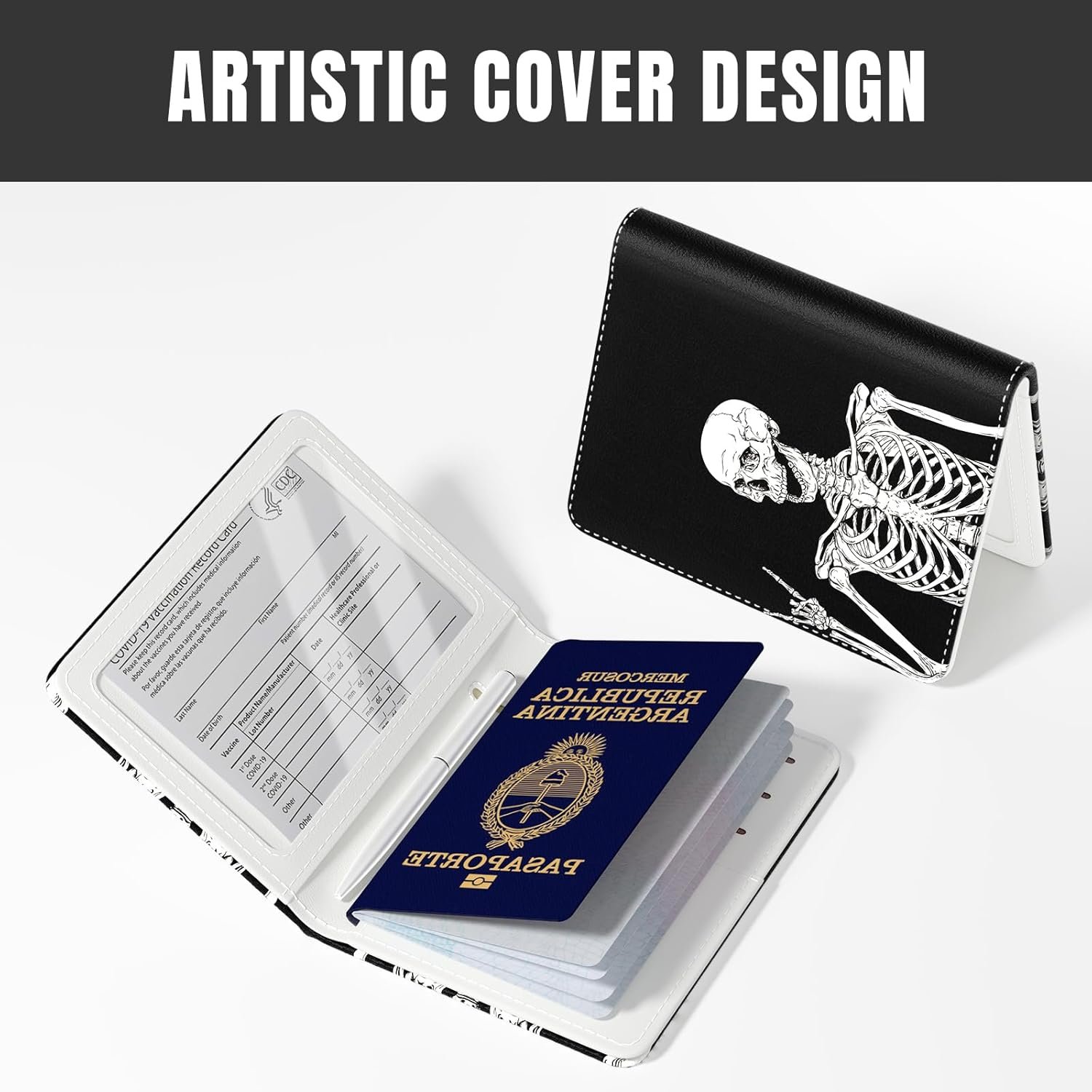 Rimilak Passport Holder, RFID Blocking Passport Cover Wallet Travel Essentials, Leather Travel Documents Organizer Protector for Women and Men, OK Skull