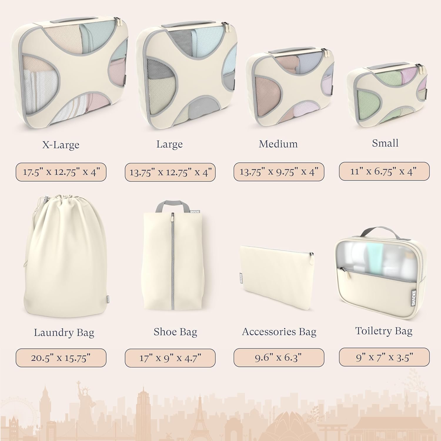 Perfect for Any Type of Trip – Whether you travel by car, train, or plane, your Shacke Pak can make life on the road much easier! Our customers enjoy using their cubes for day trips or even a big romantic getaway in Paris. No trip is too big or too small for the versatility of our packing cubes.