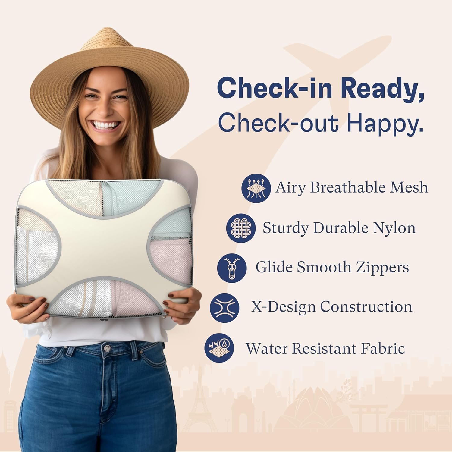 Easy Clean Material – Watch liquids glide smoothly off your packing cubes making it easy for cleaning. Accompanied by smooth snag free ergonomic zipper pulls, pack your way through any travel adventures while resting assure your packing cubes are made from the best material.