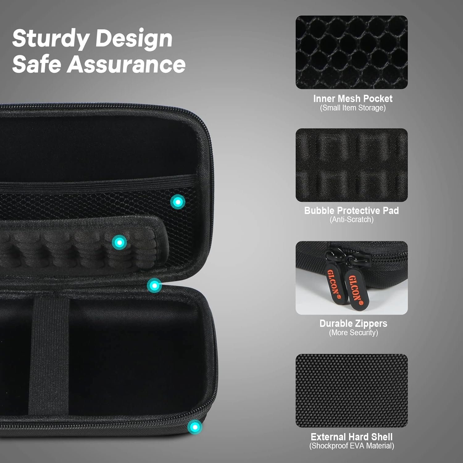 Hard Shell Protective Case – This hard travel case is made of hard shell eva material for shock resistance and high protection of your gadgets, bubble pad for scratch prevention, a elastic strap and double zippers to keep item in place without slipping off