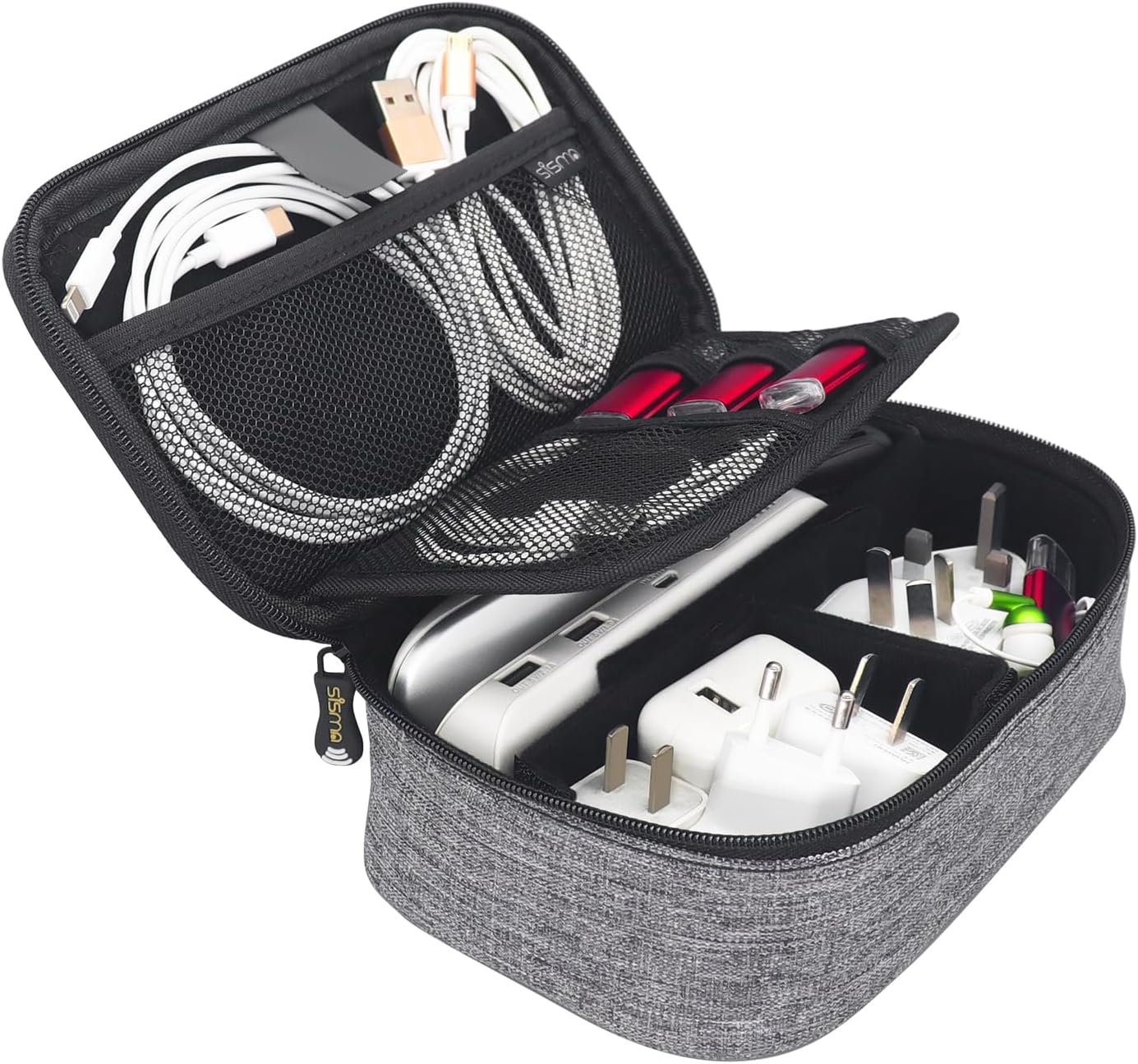 Small travel organizer conveniently stores cords, external battery, chargers, earphones, memory cards, leads, laptop adapter, mouse, external hdd small electronic accessories, can also cover cosmetics, schoolstationery, or toys etc